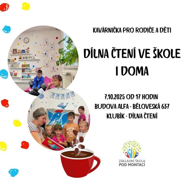 zveme vás a vaše děti na příjemné odpoledne plné knih a inspirace. Připravili jsme pro vás setkání Dílna čtení ve škole i doma, kde si ukážeme, jak probudit u dětí (a třeba i u sebe) lásku ke čtení a jak si o knihách povídat tak, aby to všechny bavilo.